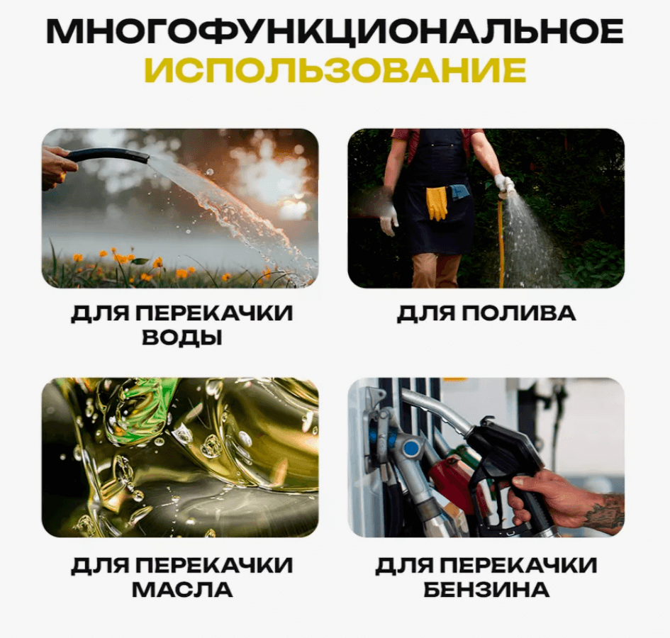 Универсальный насос для воды может использоваться для перекачки грязной воды, чистой воды из колодца, для полива огорода или дачного участка, для откачки и перекачки воды из бочки, канистры, лодки, аквариума или детского бассейна.